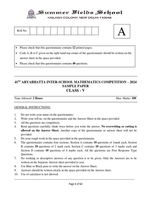 Read Online aryabhatta sample papers for class 5 PDF